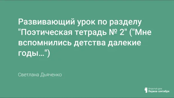 Развивающий урок поэзии в начальных классах воспитывает в ребенке чувство прекрасного, подготавливает его к встрече с творчеством великих поэтов, учит сопереживать и размышлять, помогает найти своего поэта, пробуждает интерес не только к творчеству, но и к личности поэта – человека с необычным взглядом на окружающий мир.