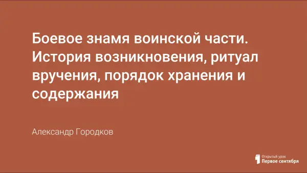 Представленная тема урока знакомит учащихся с историей возникновения Боевых Знамен на Руси, раскрывает отношение воинов к знамени как к святыне. В представленной презентации раскрывается сущность и значение знамени Победы, необходимости его сохранения в первозданном виде. Урок мотивирует учащихся на позитивное отношение к службе в армии, служение своему Отечеству.