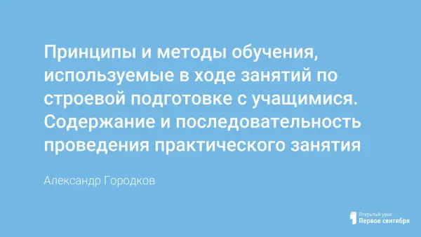 Представленная методическая разработка предназначена для подготовки руководителей занятий в ходе изучения раздела "Основы военной службы" предмета ОБЖ. Разработка содержит описание основных принципов и методов, используемых учителем на занятиях по строевой подготовке с учащимися, раскрывает содержание и последовательность проведения практического занятия по строевой подготовке.