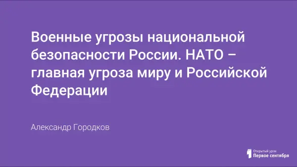 Урок посвящен военным угрозам безопасности Российской Федерации, соотнести реальные угрозы государству с адекватностью принимаемых в целях безопасности мер.