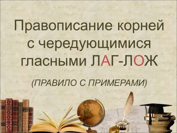 В русском языке есть слова, в которых выделяются корни ЛАГ-ЛОЖ. Это особенные корни! Корни ЛАГ-ЛОЖ нельзя проверять подбором однокоренного слова с ударной гласной! В корнях ЛАГ-ЛОЖ происходит чередование гласных А // О, то есть в этих корнях иногда пишется А, а иногда О.