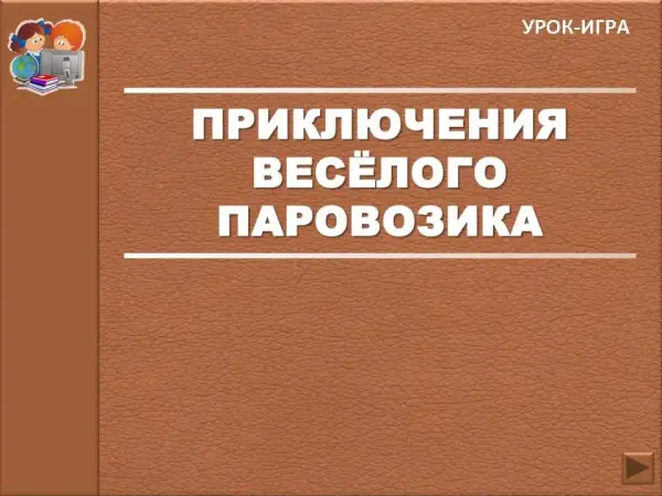 В работе представлен сценарий урока-игры по информатике «Приключения веселого паровозика». Задания подобраны по темам: "Кодирование информации", "Исполнители и алгоритмы", "Логика", "Приемы редактирования текста", "Графический редактор". Мероприятие можно проводить в двух вариантах: с использованием компьютеров для выполнения заданий и без них. Урок сопровождается интерактивной презентацией.