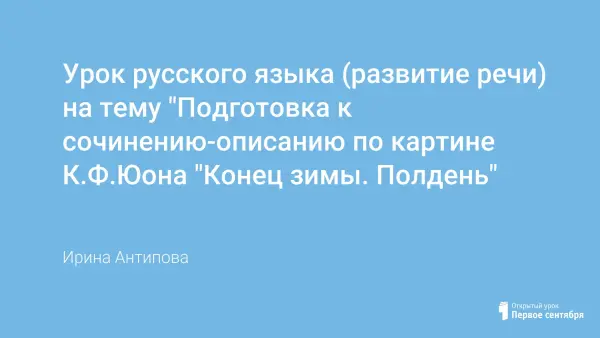 Предложенный в статье урок направлен на развитие навыка написания сочинений на материале непосредственных наблюдений. В ходе урока дети анализируют отрывки из литературных произведений, посвященных описанию природы, а затем пишут сочинение-впечатление по картине К.Ф. Юона «Конец зимы. Полдень».