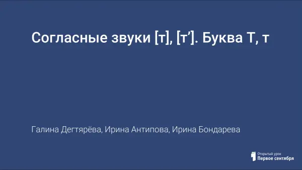 Согласные звуки [т], [т’]. Буква Т, т