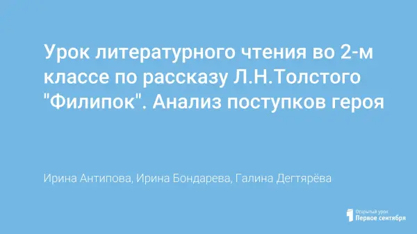 Урок литературного чтения во 2-м классе по рассказу Л.Н.Толстого "Филипок". Анализ поступков героя
