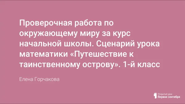 Проверочная работа по окружающему миру за курс начальной школы. Сценарий урока математики «Путешествие к таинственному острову». 1-й класс