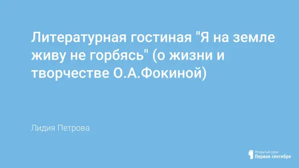 Мероприятие знакомит учащихся с жизнью и творчеством поэтессы О.А.Фокиной. Дети совершенствуют лингвистическую, коммуникативную и речевую компетенции. Воспитывается любовь к своему краю, Родине, чувство гордости за свою малую родину.