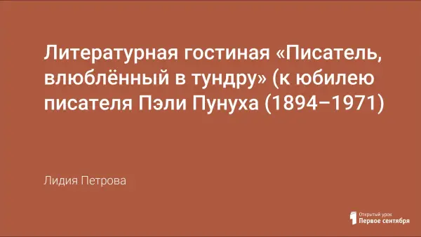 В сценарии представлены биография писателя Пэли Пунуха (Синицына Тимофея Петровича), его непростая учительская и драматическая жизненная судьба, страницы рассказов, повестей, стихи и песни, посвящённые его малой родине. В статье отражена тематика произведений писателя, реалистически рисующих суровую жизнь ненцев, бурные события, связанные с преобразованиями в тундре - новый мир, который надолго его увлёк как педагога и помог становлению в нём писателя.