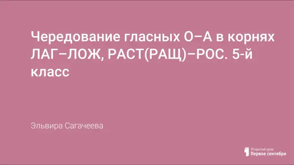 Урок в форме практикума. Опорные понятия, термины: чередующиеся гласные в корне -раст- ращ-рос-, лаг-лож-. Новые понятия: чередование. Образовательные цели урока: формировать навык правописания А–О в корнях -лаг–лож-; -раст (ращ)-рос; научить владению способом выбора А–О в корнях -лаг–лож-; -раст(ращ)–рос; научить формулировать правило и четко запоминать ход действий по его применению.