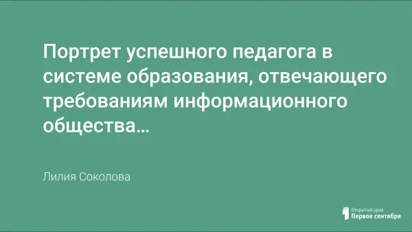 Какие же качества учителя (или «компетенции») должны быть постоянными, т.е. не зависящими от времени. А какие качества должны быть «подвижны», т.е. необходимыми учителю-педагогу в связи с требованием «нового» времени. Портрет современного учителя заключается в том, что он должен любить детей, всяких: шумных и тихих, послушных и капризных, чистеньких, ухоженных и неряшливых, хорошеньких и не очень. На том простом основании, что они - дети.