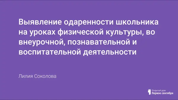 Спортивной одаренностью является определение возможностей человека и его психических способностей, которые могут быть как врожденными, так и приобретенными в процессе деятельности. Задача учителя состоит в том, чтобы максимально нагружать каждого ребенка – в данном случае его спортивную активность или создавать образовательную среду для развития уже проявившихся способностей, условий для раскрытия его потенциала, на удовлетворение потребностей учащегося.