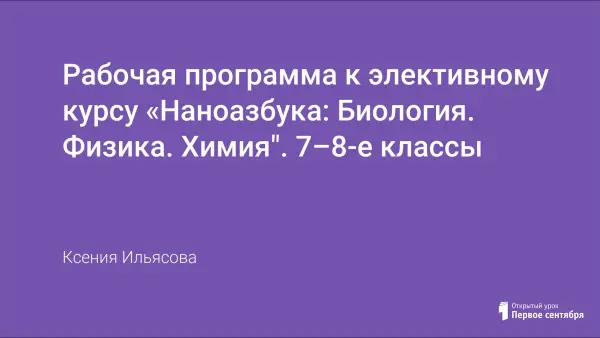 Данная программа является первой ступенью в тематике нанотехнологий и предполагает дальнейшее деление на блоки с раздельным освоением курсов нанофизика, нанобиология, нанохимия. Цель курса: познакомить учащихся с новой межпредметной отраслью знаний – нанотехнологии.