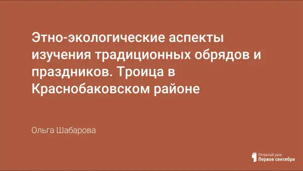 В своей работе мы попытались исследовать и рассказать как праздновали в нашем районе православный праздник Троица – Святая Пятидесятница. В работе отражены основные обычаи и православные традиции, которые свойственны именно Краснобаковскому району, так как Троица это еще и престольный праздник районного центра Красные Баки (День села), поэтому традиции и обычаи несколько отличаются от других районов. Мы надеемся, что наша разработка поможет кому-то лучше узнать традиции нашей Родины.