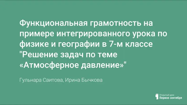 Функциональная грамотность на примере интегрированного урока по физике и географии в 7-м классе "Решение задач по теме «Атмосферное давление»"