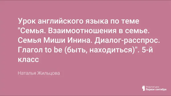 Цели урока: совершенствование лексических и грамматических навыков диалогической речи, умения строить рассказ о семье, тренировка навыков аудирования с выделением необходимой информации, закрепление новой лексики по теме " Семья", тренировка произношения английских звуков и слов, закрепление грамматического материала по глаголу to be, порядка слов при построении общих, специальных вопросов и к подлежащему, повторение букв английского алфавита.