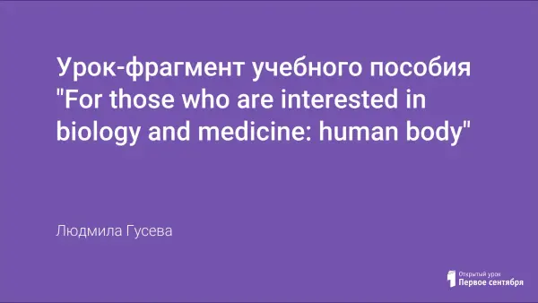 Данный урок является фрагментом учебного пособия «For those who are interested in biology and medicine: human body». Цель данного учебного пособия – оказать помощь учителю в организации профильного обучения английскому языку учащихся, углубленно изучающих предметы медико-биологического профиля.