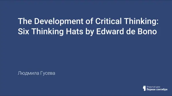 The article under consideration is devoted to the development of critical thinking while using Six Thinking Hats by Edward de Bono, in particular.