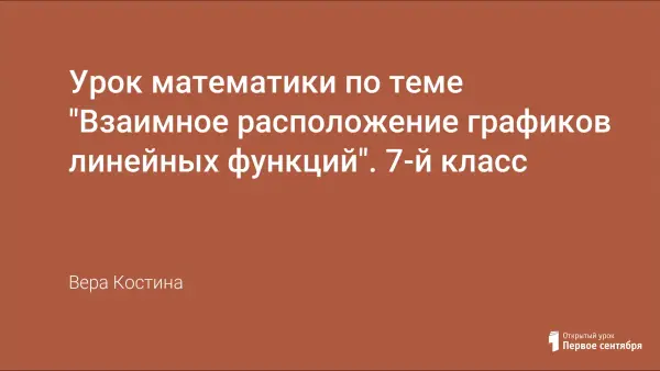 Урок направлен на повторение определения по теме «Линейная функция». Учащиеся по по внешнему виду формул, задающих линейные функции, устанавливают взаимное расположение графиков этих функций.