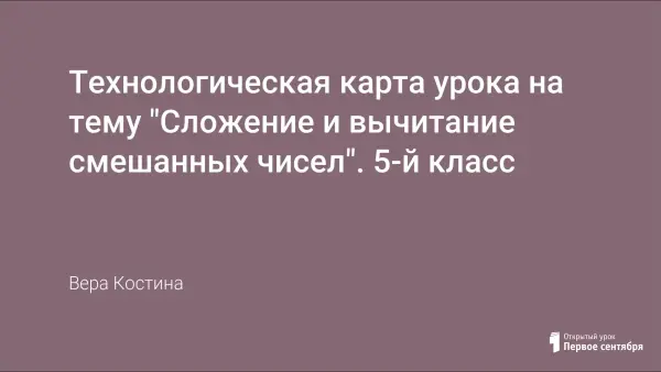 Урок изучения нового материала. На данном уроке через актуализацию знаний учитель подводит к столкновению знания и незнания. В ходе решения проблемных ситуаций учащиеся формулируют новые для них правила сложения и вычитания смешанных чисел. Полученные знания закрепляются в таком виде деятельности, как самостоятельная работа.