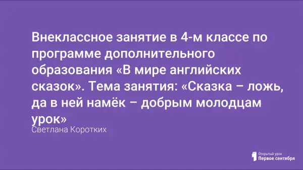 Цель занятия: знакомство со сказкой на английском языке «Мальчик, который кричал «Волк!», развитие учебного умения читать и выражать своё отношение к героям сказки, формирование таких нравственных понятий, как «правда и ложь».