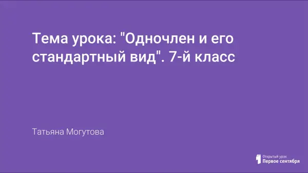 Урок алгебры изучает понятия "определение одночлена", "определение стандартного вида одночлена", "определение степени одночлена", "определение коэффициента одночлена". Урок сопровождается презентацией.