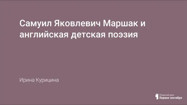 Цель урока: познакомить учащихся с детской поэзией Англии (страны изучаемого языка), развить речевые навыки через воспроизведение стихов английской поэзии наизусть, познакомить детей с правилами литературного перевода, посредством изучения перевода английских детских стихов русским поэтом Самуилом Яковлевичем Маршаком, а также другими поэтами.