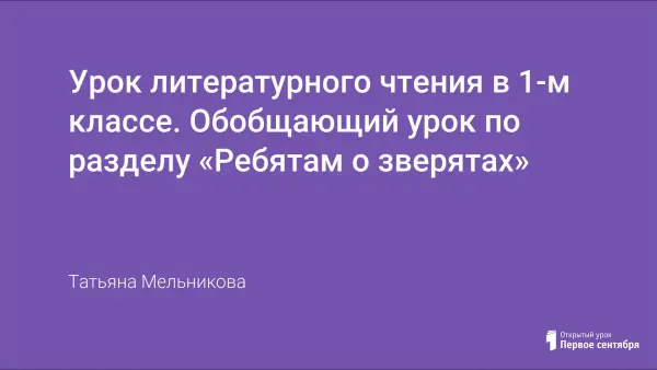 Цель урока: обобщение и систематизация знаний по разделу «Ребятам о зверятах». Задачи урока: создать условия для повторения содержания раздела (вспомнить автора, название и героев произведений); совершенствовать навыки выразительного чтения.