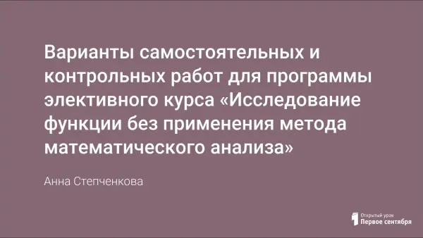 Статья является продолжением авторской программы элективного курса «Исследование функции без применения метода математического анализа». В статье разобраны примеры исследования функции простейшими методами, предложены варианты самостоятельных и контрольных работ. Автор рекомендует использовать материал при работе на уроках в обычных, профильных классах и на факультативных занятиях по математике.