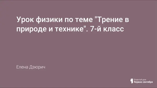 Урок объяснения нового материала и комплексного применения знаний. Рассказывается о способах уменьшения и увеличения силы трения. Показывается роль силы трения в природе и технике. Отрабатываются навыки решения качественных задач. Расширяется кругозор обучающихся по предмету. Предложенные задачи помогают школьникам лучше узнать и полюбить предмет, увидеть проявление физики в повседневной жизни.