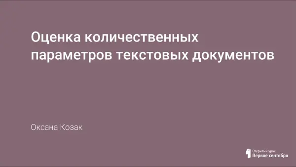 Цели урока: овладение первичными навыками оценки количественных параметров текстовых документов, через использование основных способов представления информации в памяти компьютера.
