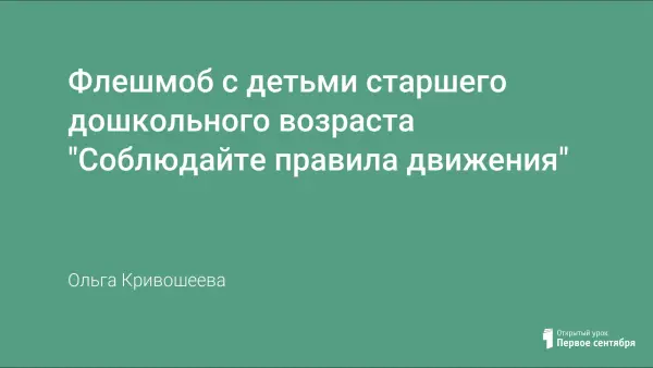 Статья знакомит с одной из современных форм работы с дошкольниками. Флешмоб – это представление, рассчитанное на случайных зрителей, с целью привлечения их внимания. Представленные материалы направлены на решение задач профилактики детского дорожно-транспортного травматизма.