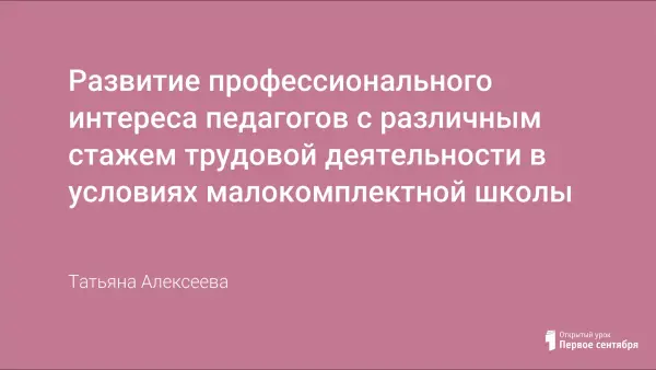 Особый интерес представляет изучение профессионального интереса педагогов в условиях малокомплектной школы, поскольку в большинстве малокомплектных школ сохраняется традиционная конструкция учебных планов, консервируются традиционные учебные программы; наблюдается тенденция снижения качества базового образования в среднем звене, что автоматически снижает качество образования.