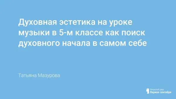 Симон Соловейчик в "Педагогике для всех" пишет: "Дух живет в каждом из нас, и мы отвечаем за его состояние в том сообществе людей, на которое распространяется наше духовное влияние". Возвышенное рассуждение о смысле музыки обращается ко всем духовным силам. Прежде всего к уму, который уже настроен музыкой и которому предстоит преобразиться. Предлагается к рассмотрению содержание урока музыки в 5-м классе (Программа по музыке В.В. Алеева, Т.И. Науменко, Т.Н. Кичак).