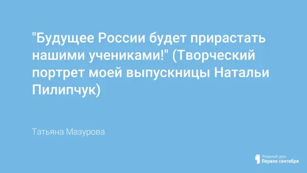 Какие нравственные уроки-опыты постигают учащиеся, анализируя, любуясь "живописным пространством слова"? Почему после чтения статей Г.Ю. мысливцевой рождается желание вновь обратиться к их изучению, пофантазировать, выстраивая собственную концепцию художественного образа? Ее творчество вдохновляет к творческой деятельности и выступает действенным примером высокого служения родному Омску.