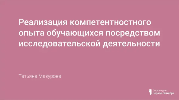 Представлены: создание условий для успешной исследовательской деятельности обучающихся; содержание проектных блоков, раскрывающих основные направления формирования ключевых компетенций; системно-деятельностный подход на примере "исследовательских маршрутов" обучающихся.