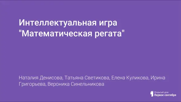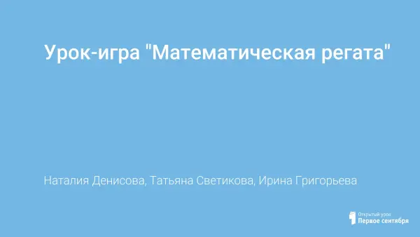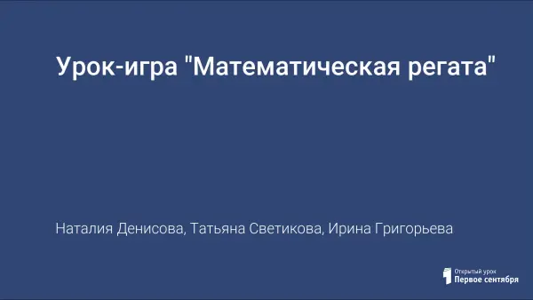 Традиционно в начальной школе проходят предметные олимпиады, интеллектуальные марафоны, игровые уроки. Авторы статьи предлагают провести математическую регату – командное соревнование, в котором участвуют учащиеся из одной параллели. Игровой урок ориентирован на учащихся 4-х классов. Основной целью урока является привитие интереса младших школьников к предмету и развитие творческих способностей.