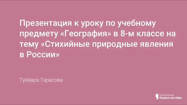 Цель урока: сформировать и углубить знания и представления о стихийных явлениях, изучить их географию и распространение на территории России, рассмотреть причины, вызывающие стихийные явления и меры борьбы с ними.