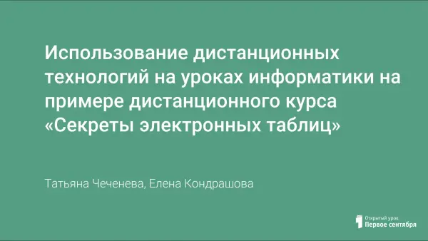 Использование дистанционных технологий на уроках информатики на примере дистанционного курса «Секреты электронных таблиц»