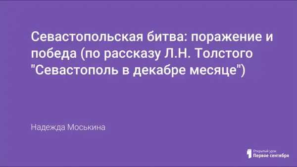 Урок-исследование по рассказу Л.Н.Толстого «Севастополь в декабре месяце» позволяет обучающимся найти факты, указывающие на поражение и победу русской армии в Крымской войне 1853–1856 г., и убедиться в невозможности не только взять Севастополь, но и «поколебать где бы то ни было силу русского народа». Межпредметные связи с уроками истории, ОРКСЭ, ИЗО.