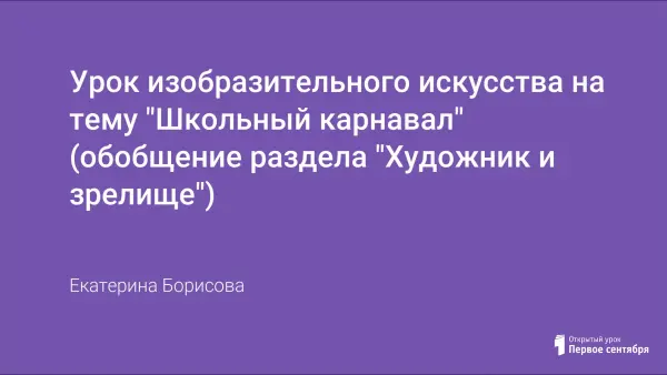 На данном уроке дети на себе «примеряют» роль художника, перед которым стоит задача в оформлении декораций, костюмов, масок и афиши к спектаклю, который сами и разыгрывают в конце урока. Тем самым на уроке проходит закрепление и обобщение раздела «Художник и зрелище».