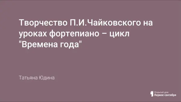 Изучение творчества Петра Ильича Чайковского, великого русского композитора XIX века, сопровождает обучение учащихся фортепианного класса все годы обучения. Его фортепианные произведения, циклы «Детский альбом», «Времена года» являются незаменимым материалом по раскрытию духовной сущности русской музыки и русской культуры в целом.