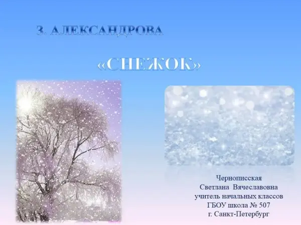 Презентация к уроку литературного чтения "З.Александрова "Снежок"