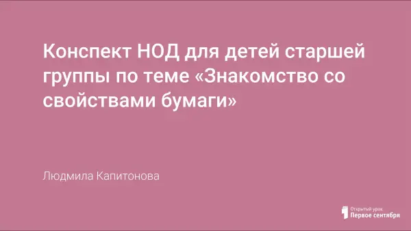 Цель данного занятия: расширять и закреплять кругозор детей по теме «Знакомство с бумагой»; развивать внимание, мышление, память; формировать представление у детей о разных видах бумаги и ее свойствах.