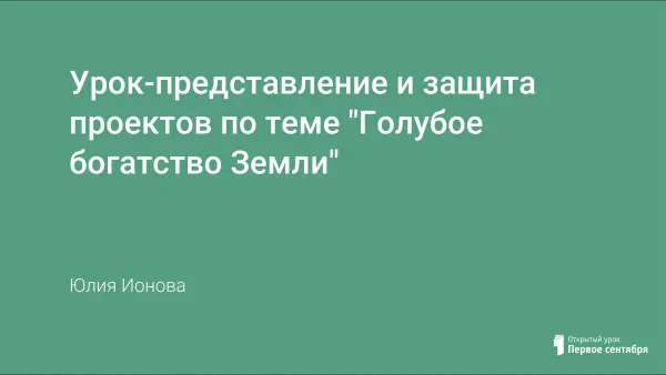 Урок-представление и защита проектов по теме "Голубое богатство Земли"