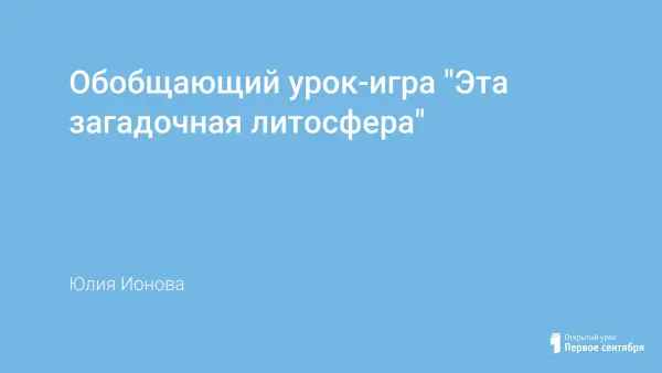 Обобщающий урок-игра "Эта загадочная литосфера"