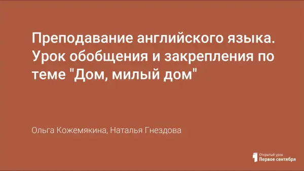 Преподавание английского языка. Урок обобщения и закрепления по теме "Дом, милый дом"