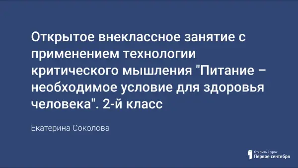 Данное занятие проводится в рамках образовательной программы «Разговор о правильном питании» М.М.Безруких. С применением приемов развития критического мышления у детей младшего школьного возраста. Направленно на формирование у них мотивации здоровья и навыков здорового поведения.