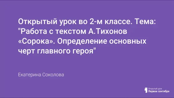 Цели урока: формировать умение работать с текстом; определять основные черты главного героя; развивать речь, творческую, познавательную активность учащихся; воспитывать интерес к чтению, воспитывать чувство товарищества, взаимопомощь, воспитывать бережное отношение к природе, птицам.