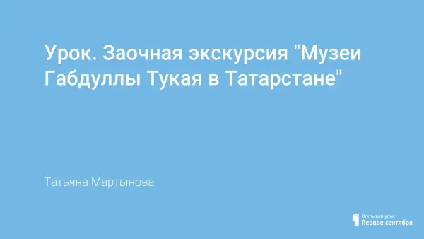 Урок разработан с учётом национально-регионального компонента. Его целесообразно провести после изучения лирики А.С. Пушкина в 9-м классе в форме заочной экскурсии. Урок сопровождается демонстрацией портрета поэта, карты Республики Татарстан, видеозаписей, открыток, фотографий, изображающих достопримечательности, связанные с именем Г.Тукая, домов-музеев, их комнат и др.