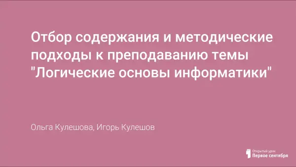 Отбор содержания и методические подходы к преподаванию темы "Логические основы информатики"